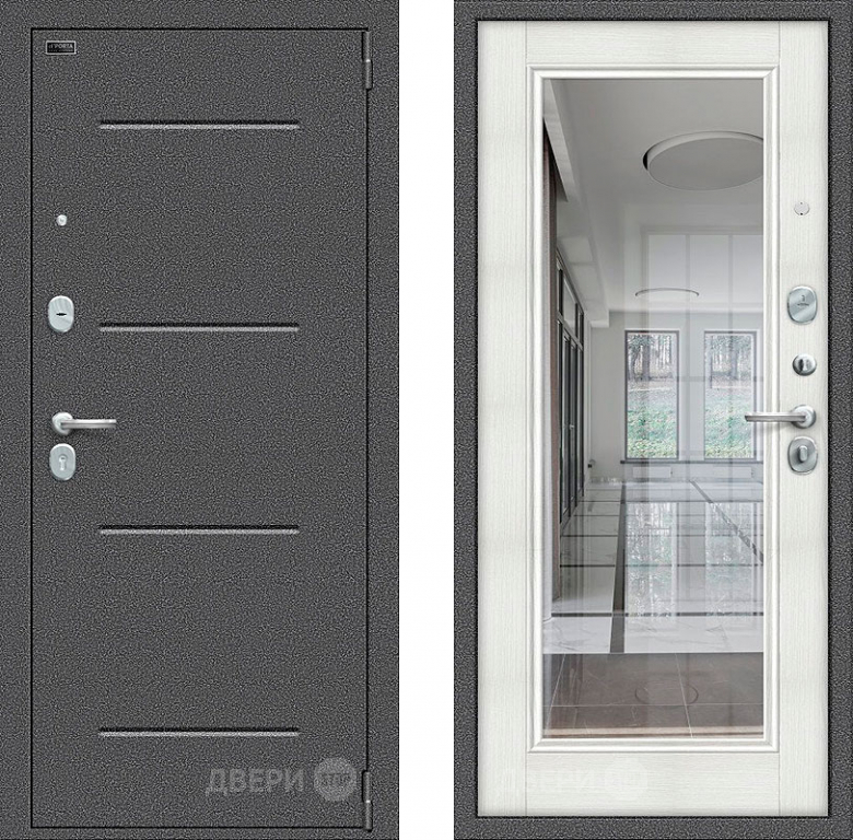 Входная металлическая Дверь Bravo Porta S-2 104/П61 с зеркалом Бьянко в Электроуглях 860х2050 мм