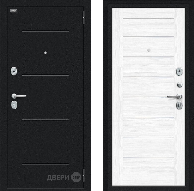 Входная металлическая Дверь Bravo Техно Букле черное/Snow Melinga в Электроуглях 860х2050 мм