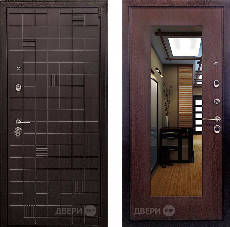 Входная металлическая Дверь Ратибор Силуэт зеркало 3К Венге капучино в Электроуглях 860х2050 мм