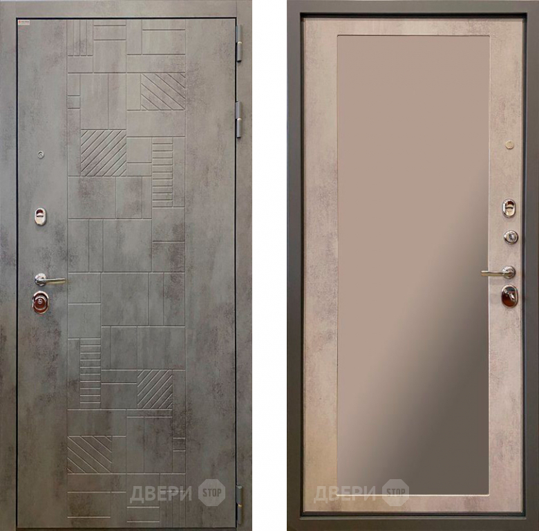 Входная металлическая Дверь Ратибор Тетрис 3К с зеркалом Бетон светлый в Электроуглях 860х2050 мм
