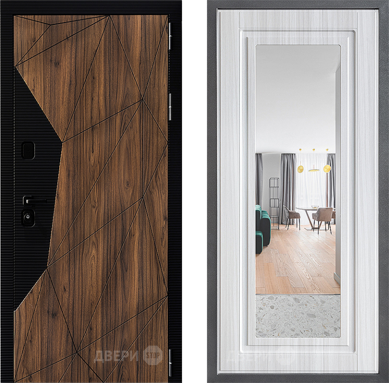 Входная Дверь Дверной континент ДК-11 ФЛЗ Зеркало Сандал белый 960x2050 мм