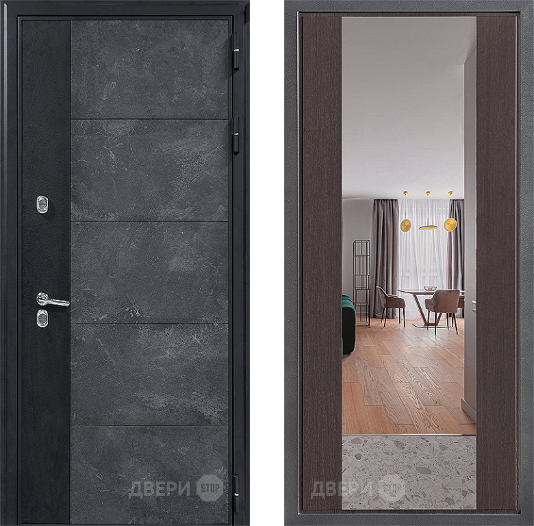 Входная Дверь Дверной континент ДК-15 Бетон ТЕРМО ФЛЗ-1 Зеркало Венге 860x2050 мм