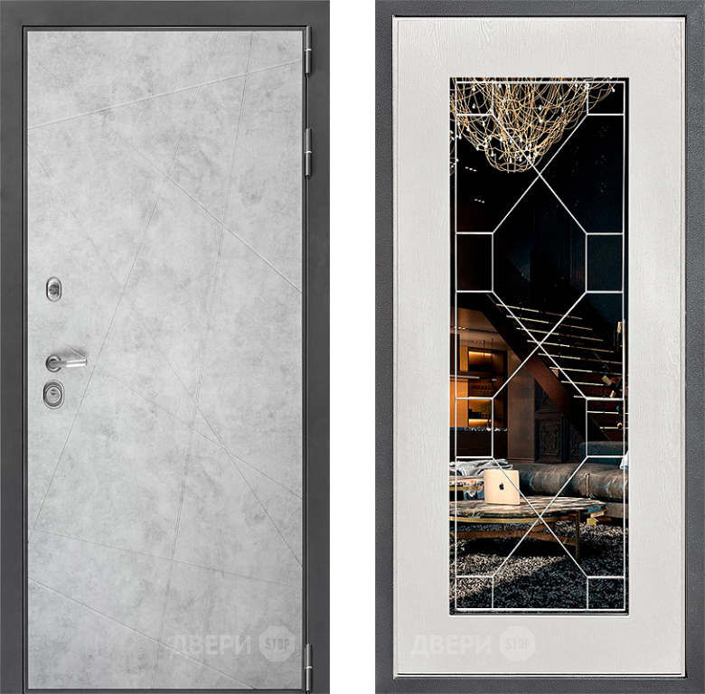 Входная Дверь Дверной континент ДК-3/743 ФЛ-Тиффани Зеркало Белое дерево 960x2050 мм