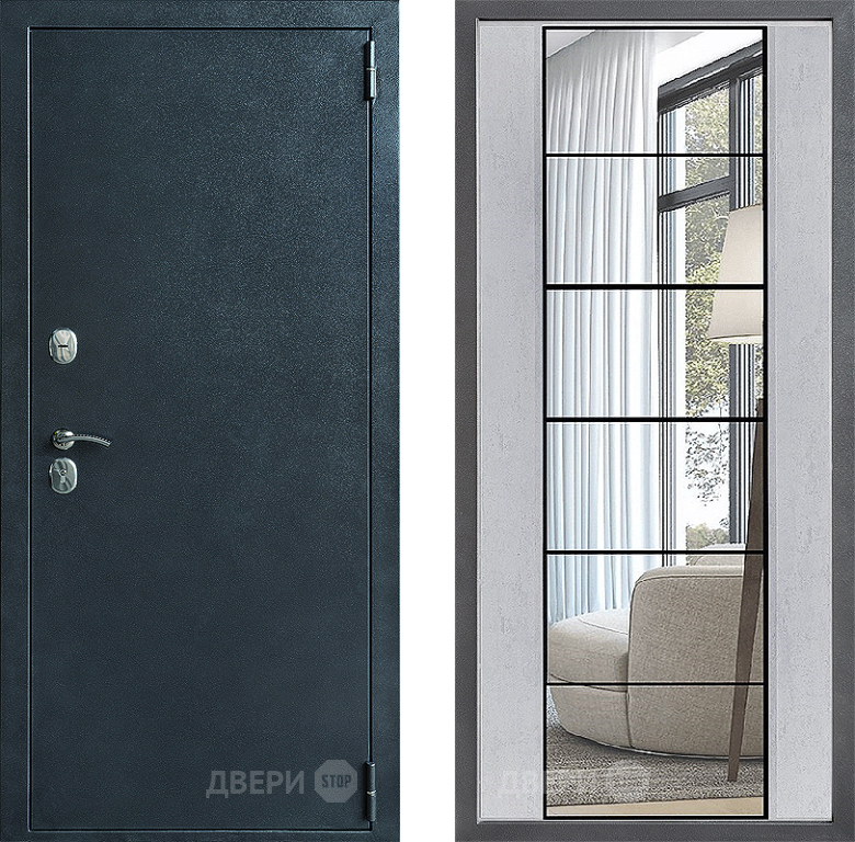 Входная Дверь Дверной континент ДК-70 Дизайн ФЛЗ-2 Зеркало Бетон светлый 960x2050 мм