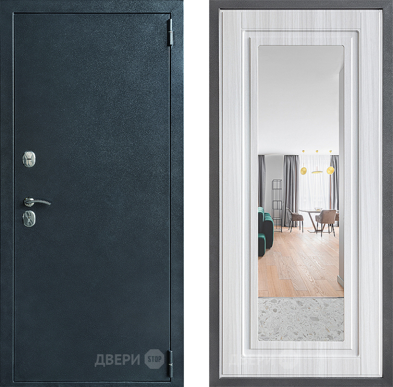 Входная Дверь Дверной континент ДК-70 Дизайн ФЛЗ Зеркало Сандал белый 860x2050 мм