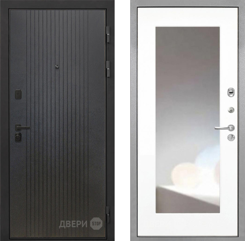Входная Дверь Интекрон (INTECRON) Профит Black ФЛ-295 ФЛЗ-120-М Зеркало Белый матовый 860x2050 мм