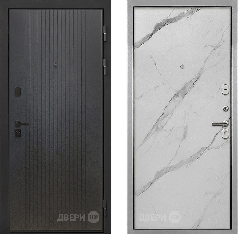 Входная Дверь Интекрон (INTECRON) Профит Black ФЛ-295 Гладкая Мрамор натуральный арктик 860x2050 мм