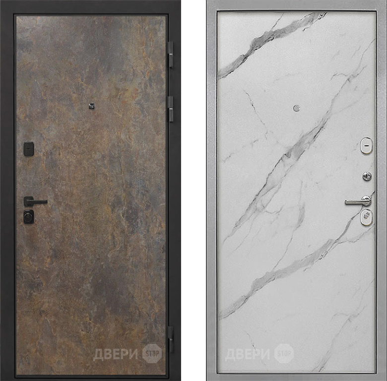 Входная Дверь Интекрон (INTECRON) Профит Black Гранж Гладкая Мрамор натуральный арктик 860x2050 мм