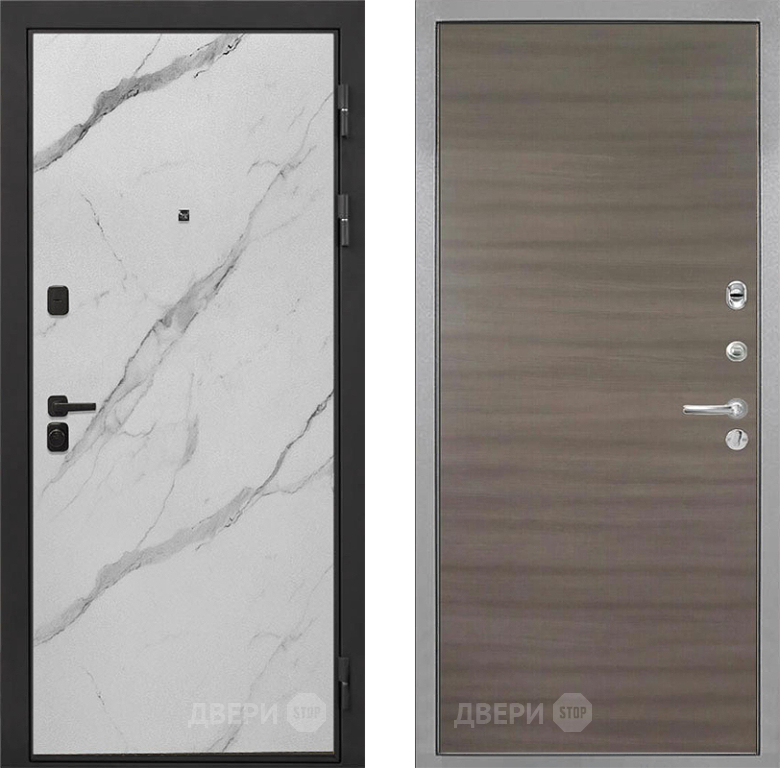 Входная Дверь Интекрон (INTECRON) Профит Black Мрамор Арктик Гладкая Дуб тоскано поперечный 860x2050 мм
