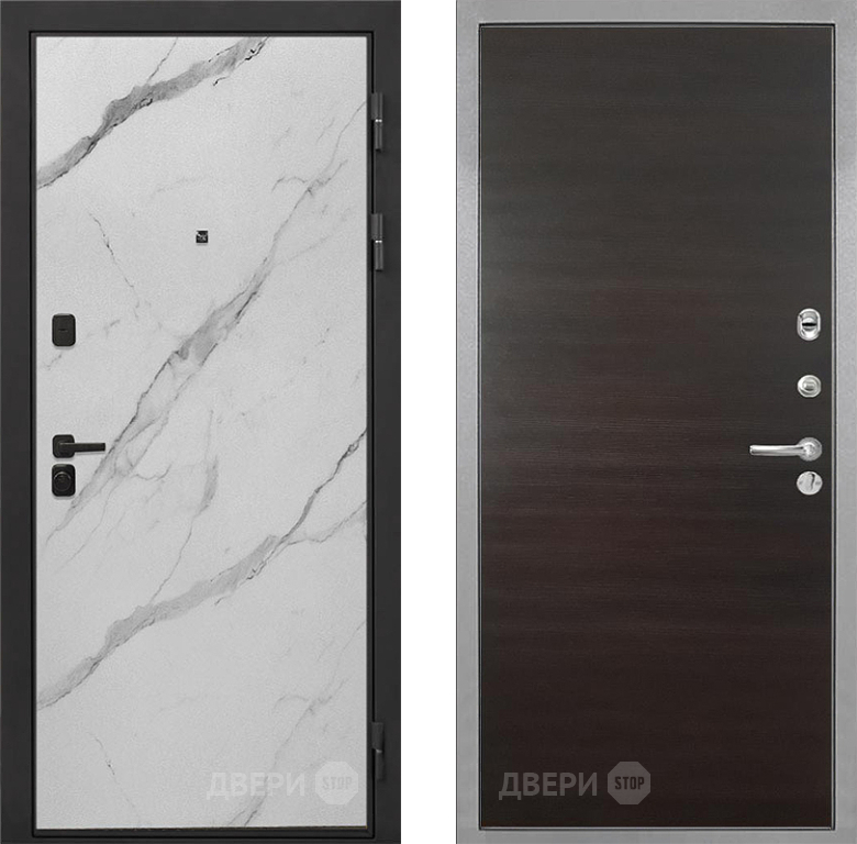 Входная Дверь Интекрон (INTECRON) Профит Black Мрамор Арктик Гладкая Эковенге поперечный 860x2050 мм