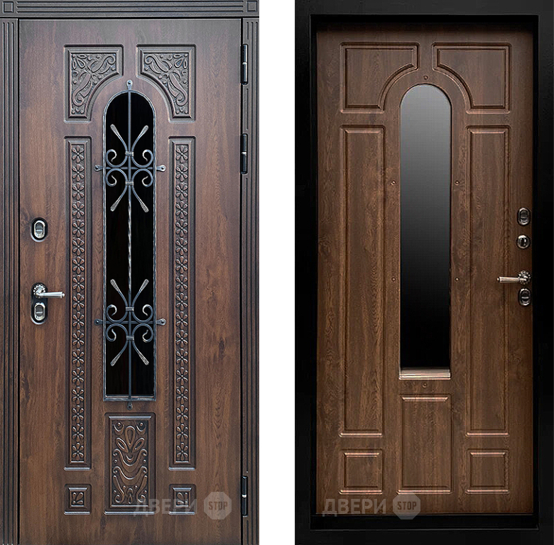 Входная Дверь Престиж TERMO с терморазрывом Лацио Дуб с окном и ковкой Дуб 860x2050 мм