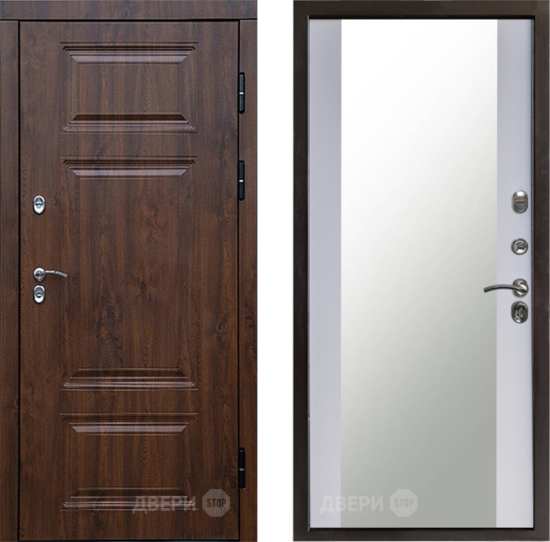 Входная Дверь Престиж TERMO с терморазрывом Премиум Орех Зеркало Белый софт 860x2050 мм