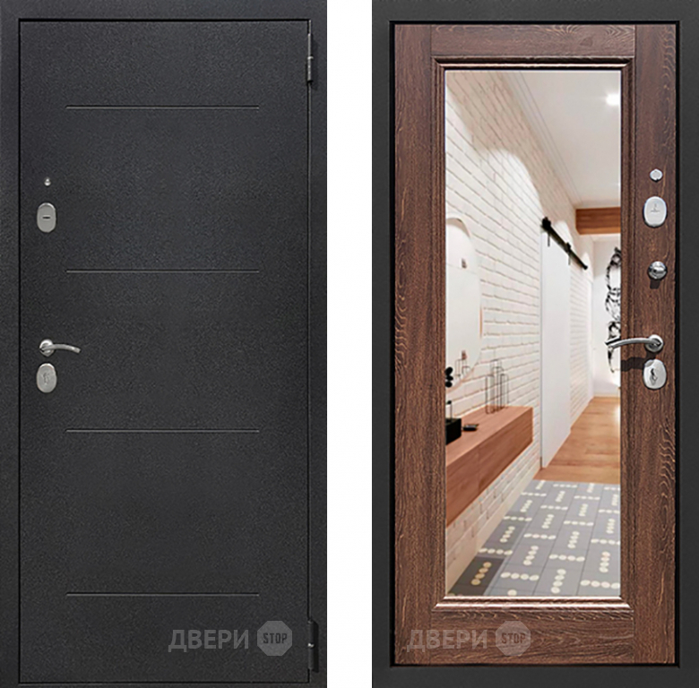 Входная металлическая Дверь Престиж 100 с зеркалом Шелк/Дуб филадельфия коньяк в Электроуглях 860х2050 мм