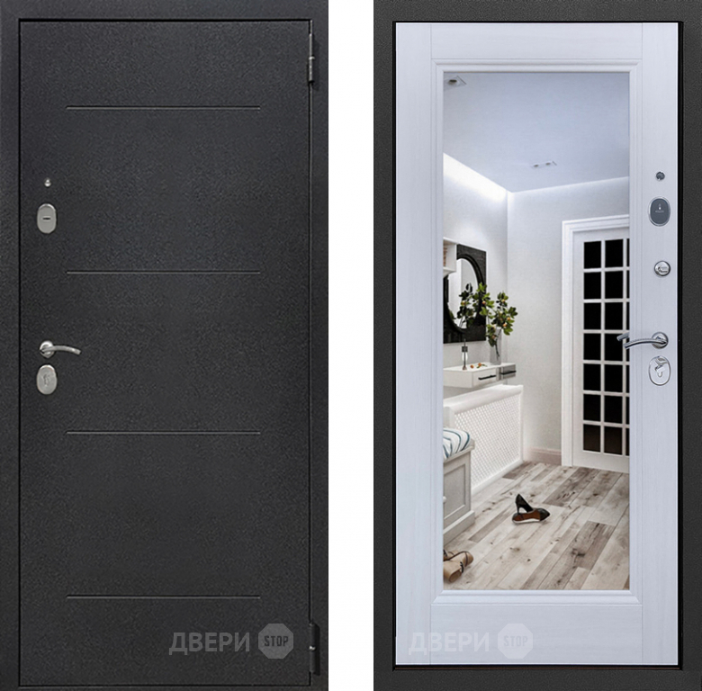 Входная металлическая Дверь Престиж 100 с зеркалом Шелк/Лиственница белая в Электроуглях 860х2050 мм