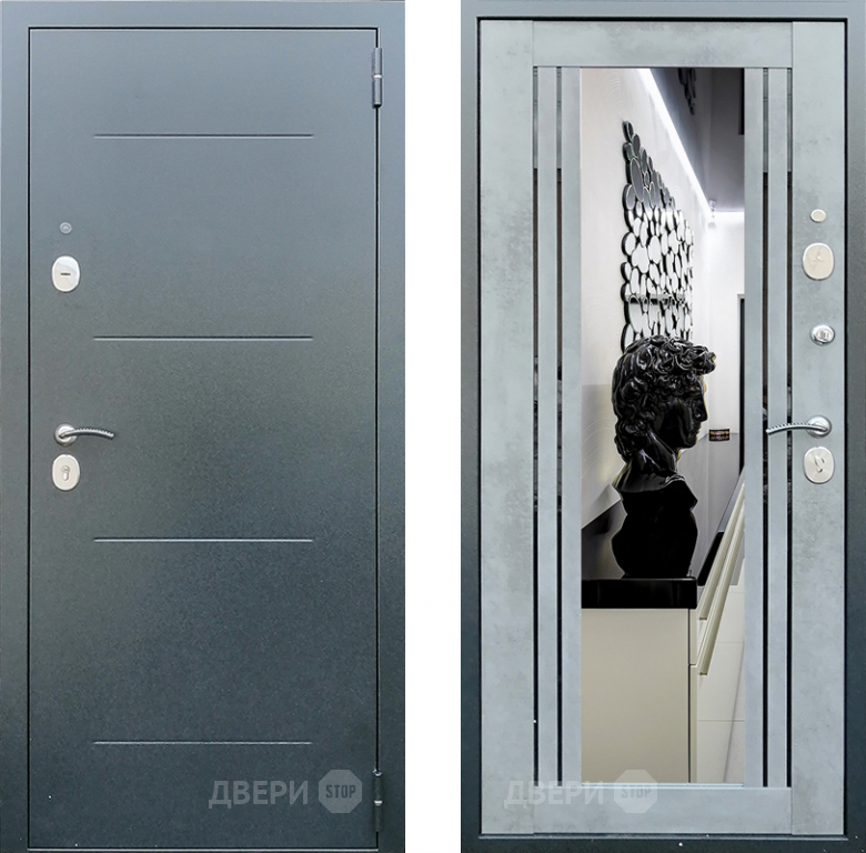Входная металлическая Дверь Престиж Люкс с зеркалом Бетон в Электроуглях 860х2050 мм