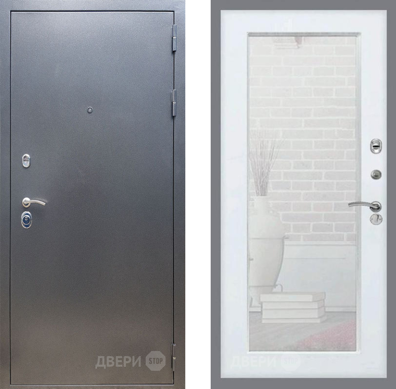 Входная Дверь Рекс (REX) 11 Зеркало Пастораль Силк Сноу 860x2050 мм