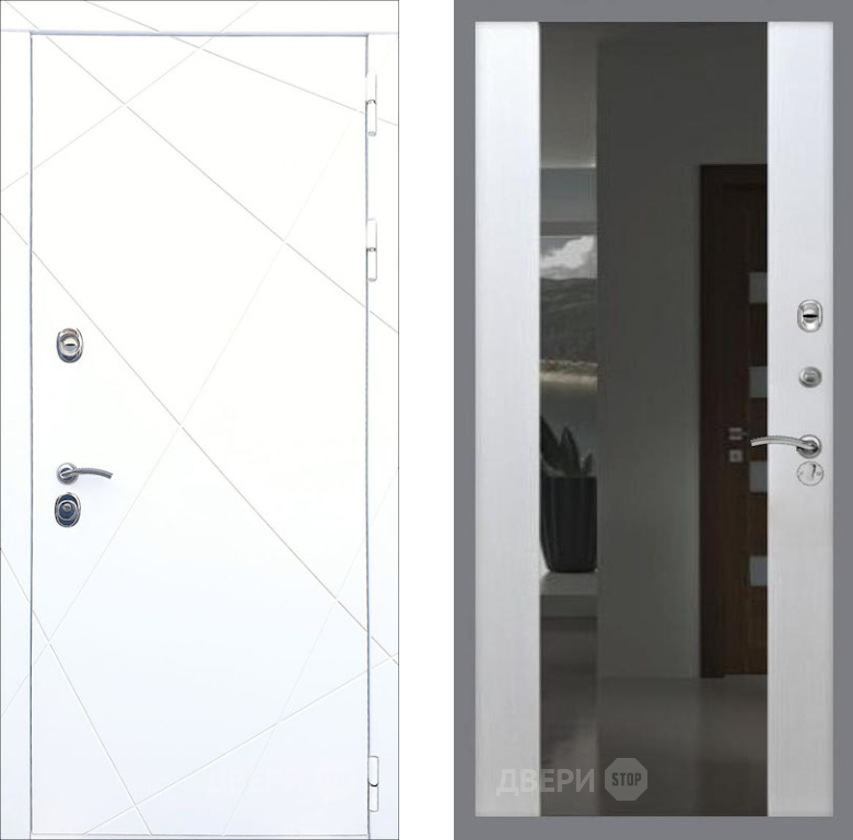 Входная Дверь Рекс (REX) 13 Силк Сноу СБ-16 Зеркало Белый ясень 860x2050 мм
