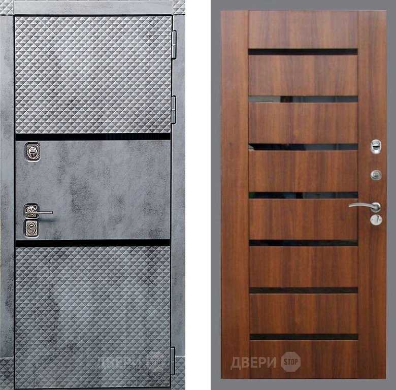 Входная Дверь Рекс (REX) 15 Бетон Темный СБ-14 стекло черное Орех бренди 860x2050 мм