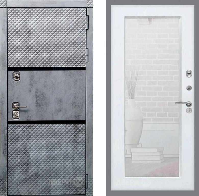 Входная Дверь Рекс (REX) 15 Бетон Темный Зеркало Пастораль Белый ясень 860x2050 мм