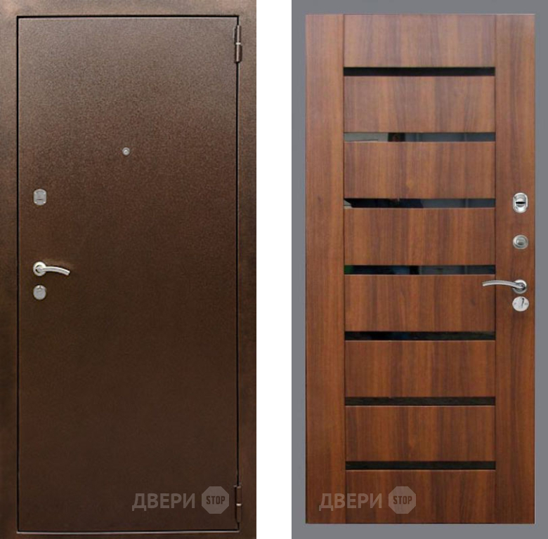 Входная Дверь Рекс (REX) 1А Медный Антик СБ-14 стекло черное Орех бренди 960x2050 мм