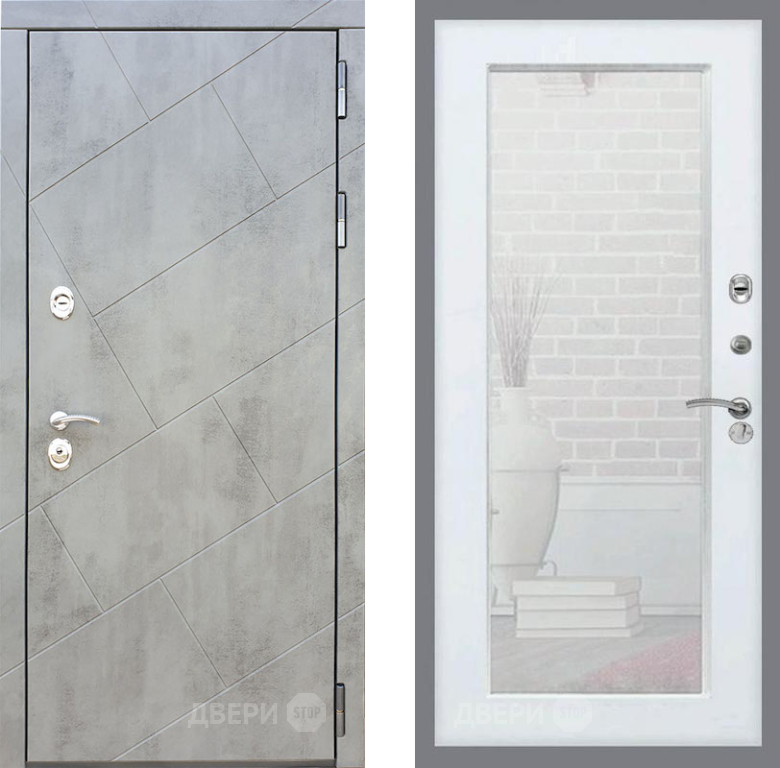 Входная Дверь Рекс (REX) 22 Зеркало Пастораль Силк Сноу 860x2050 мм