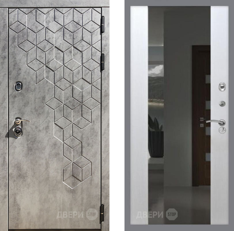 Входная Дверь Рекс (REX) 23 СБ-16 с Зеркалом Лиственница беж 860x2050 мм