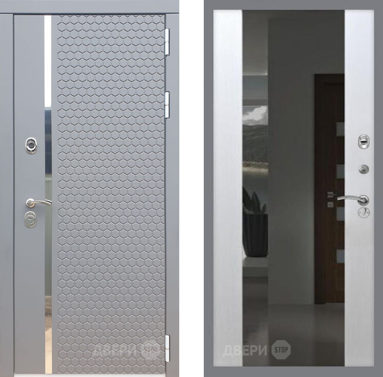 Входная Дверь Рекс (REX) 24 СБ-16 с Зеркалом Лиственница беж 860x2050 мм