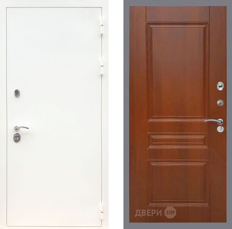 Входная Дверь Рекс (REX) 5 Белая Шагрень FL-243 Итальянский орех 860x2050 мм