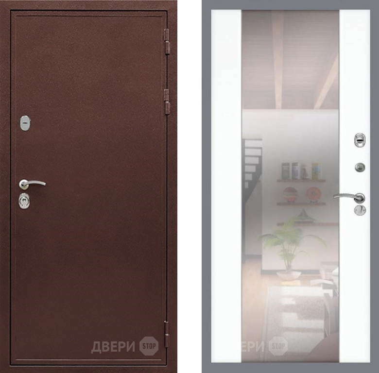 Входная Дверь Рекс (REX) 5 металл 3 мм СБ-16 Зеркало Силк Сноу 960x2050 мм