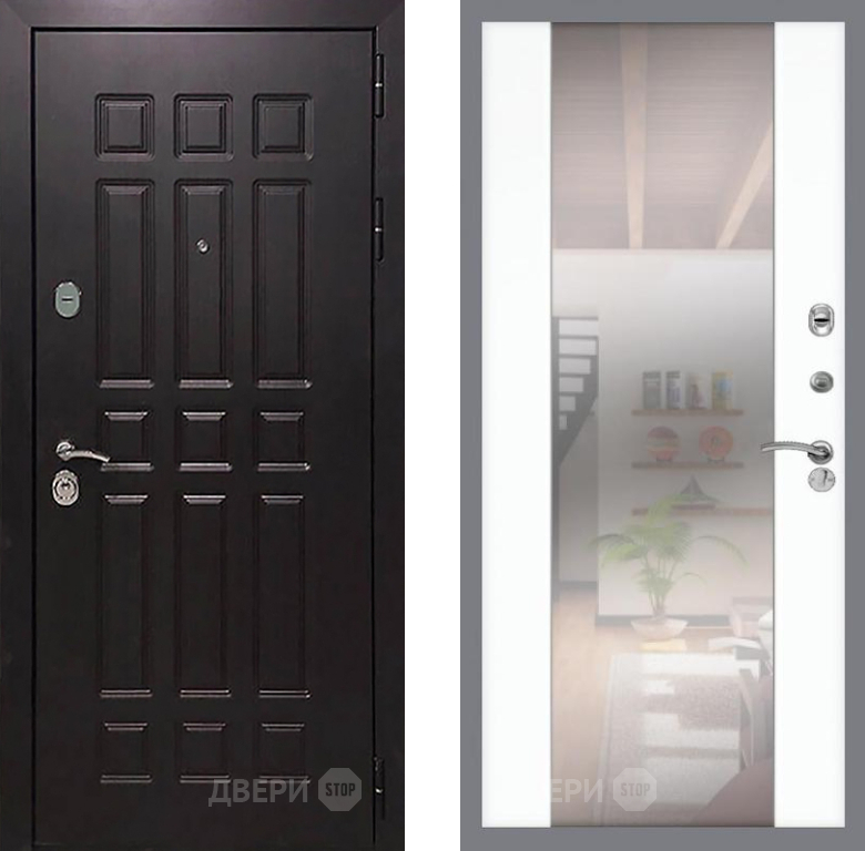 Входная Дверь Рекс (REX) 8 СБ-16 Зеркало Силк Сноу 860x2050 мм