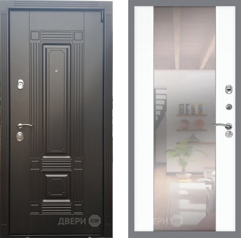 Входная Дверь Рекс (REX) 9 СБ-16 Зеркало Силк Сноу 860x2050 мм