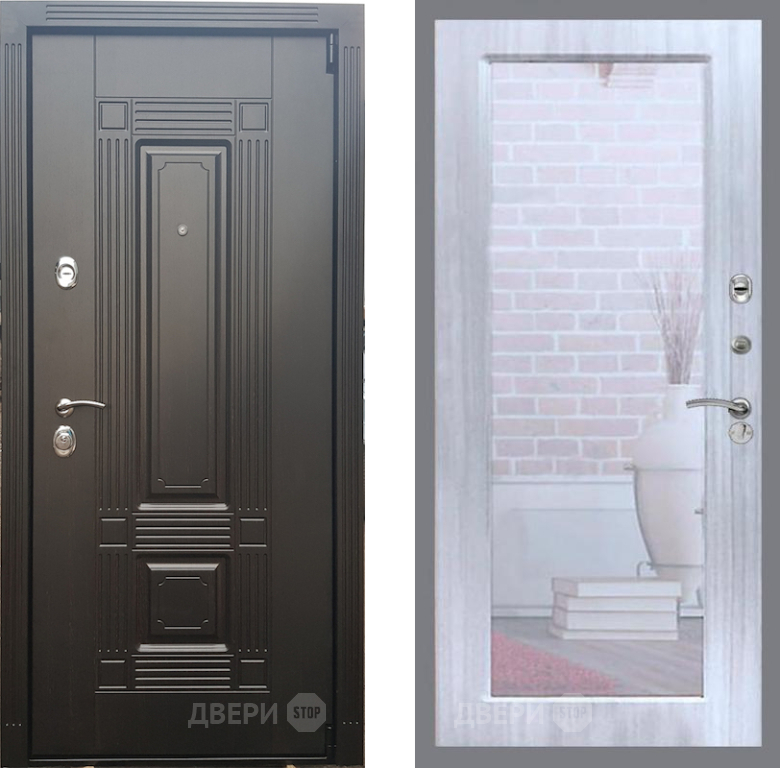 Входная Дверь Рекс (REX) 9 Зеркало Пастораль Сандал белый 860x2050 мм