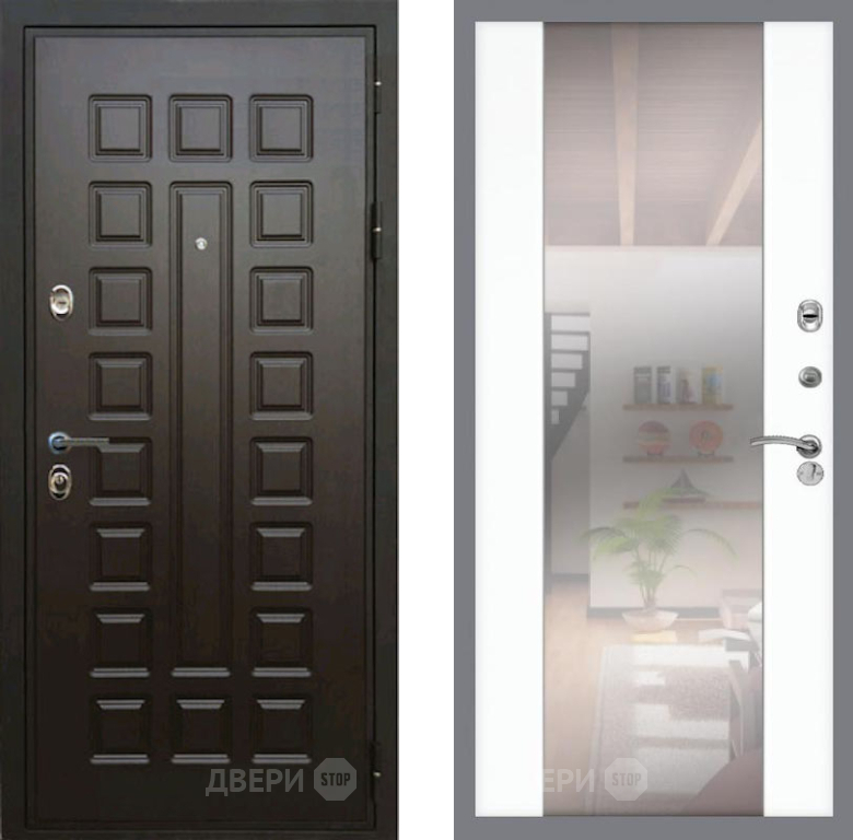 Входная Дверь Рекс (REX) Премиум 3к СБ-16 Зеркало Силк Сноу 960x2050 мм