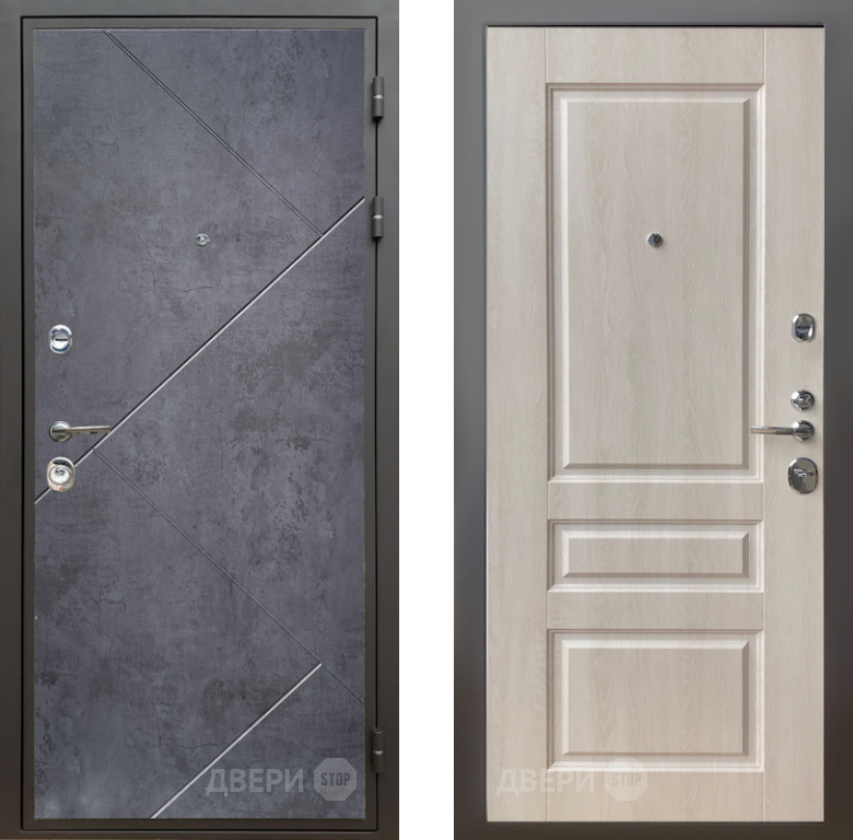 Входная Дверь Шелтер (SHELTER) Комфорт Бетон урбан индиго 3 Дуб филадельфия крем 960x2050 мм