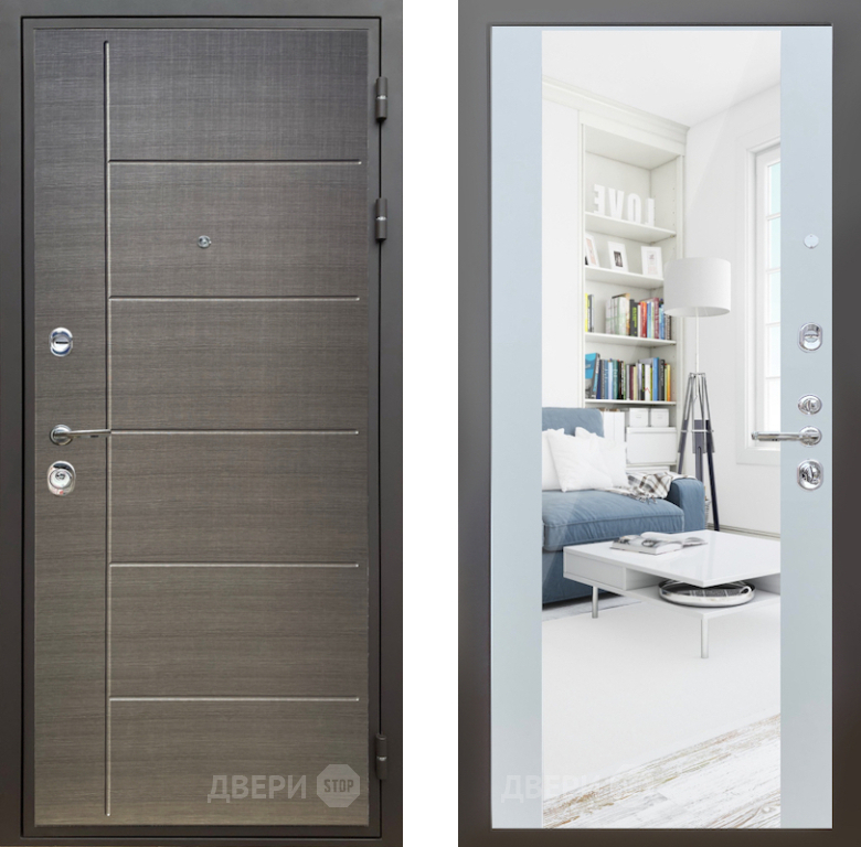 Входная Дверь Шелтер (SHELTER) Комфорт Лен сильвер 13 с зеркалом Белый матовый 860x2050 мм
