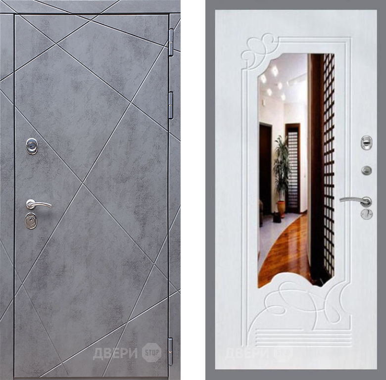 Входная Дверь Стоп Лучи ЗкркалоФЛ-147 Ясень белый 860x2050 мм