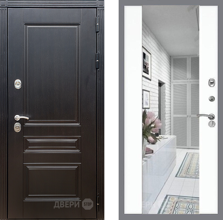 Входная Дверь Стоп МЕГАПОЛИС Зеркало СБ-16 Силк Сноу 860x2050 мм