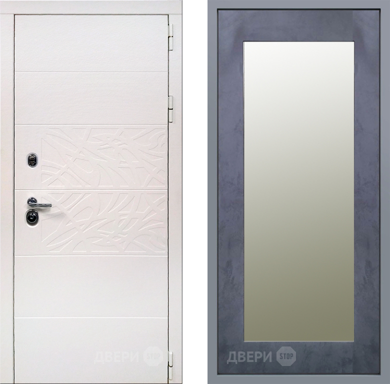 Входная Дверь Заводские двери Дэко Вайт Зеркало Модерн Бетон темный 860x2050 мм