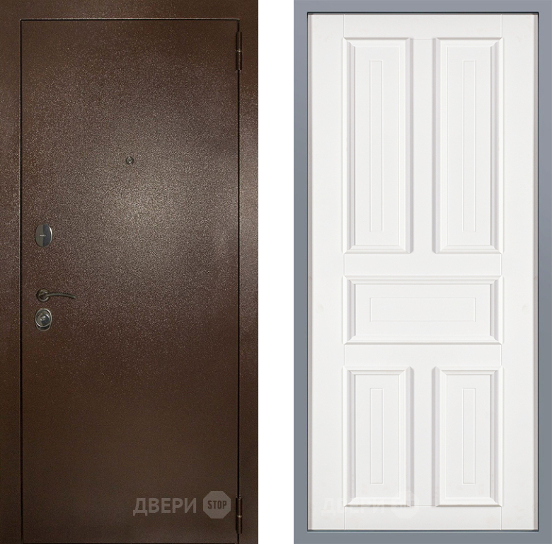 Входная Дверь Заводские двери Эталон 3к антик медь Уругвай Белый софт 860x2050 мм
