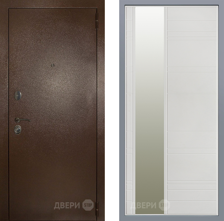 Входная Дверь Заводские двери Эталон 3к антик медь Зеркало Лира Белый софт 860x2050 мм