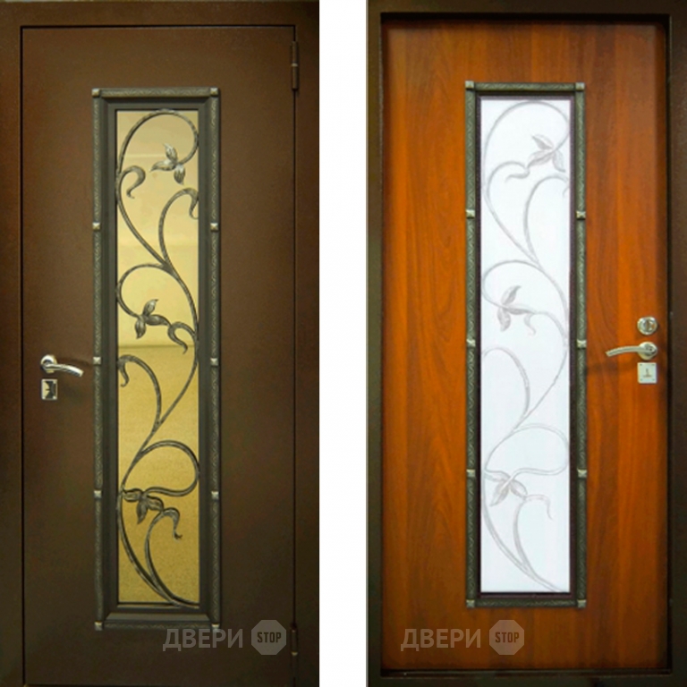 Заводские двери с ковкой и стеклом Лоза в Электроуглях 860х2050 мм